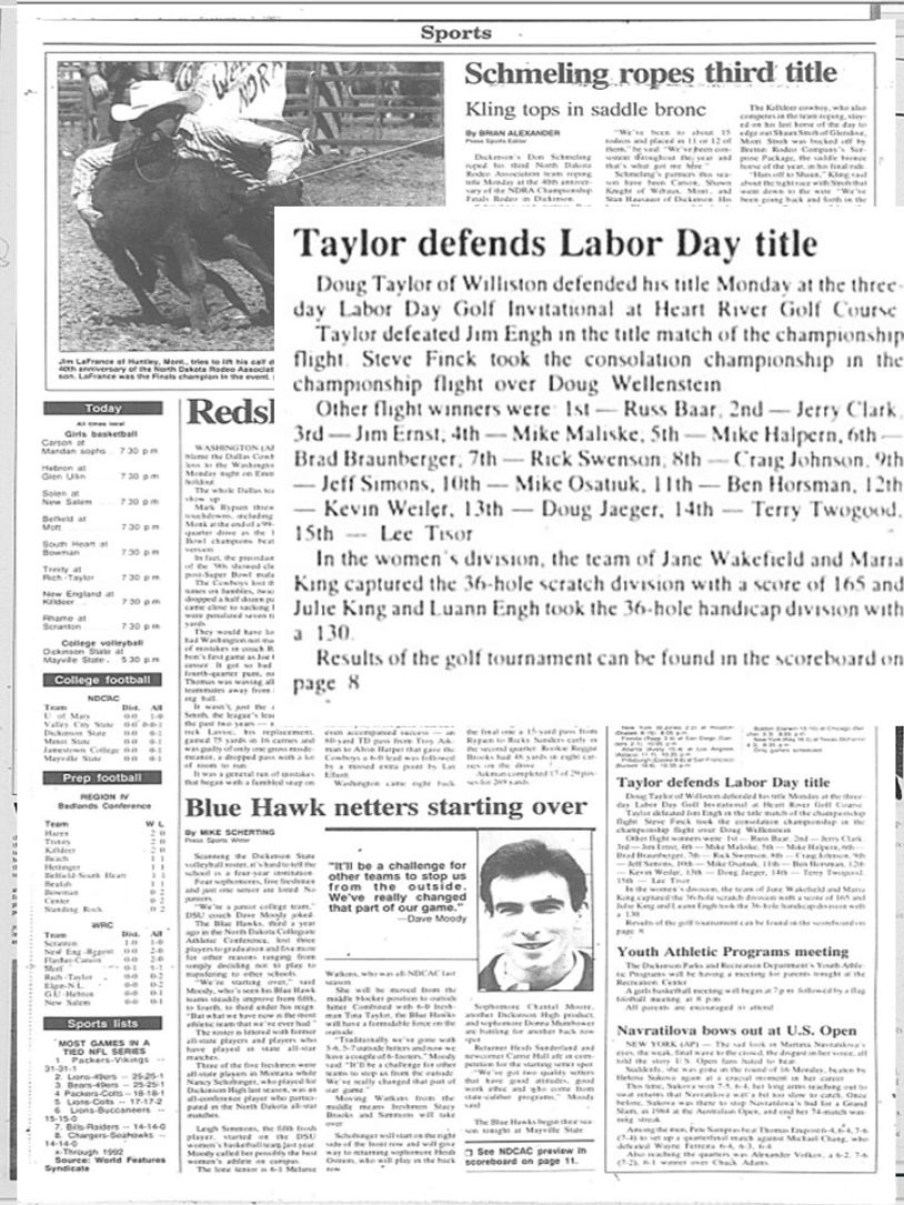 Williston's Doug Taylor wins over Kelsey, Jim Engh and Dick Haug in the finals